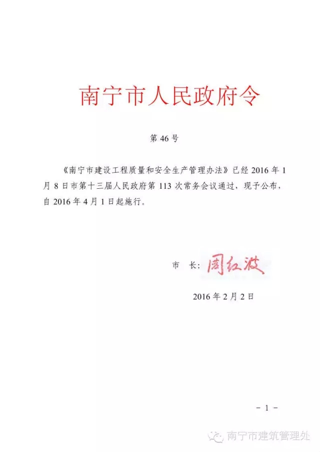 第七十五條 本辦法自2016年4月1日起施行。2013年6月30日頒布的《南寧市建設(shè)工程材料使用管理辦法》(市人民政府令第15號)同時廢止。