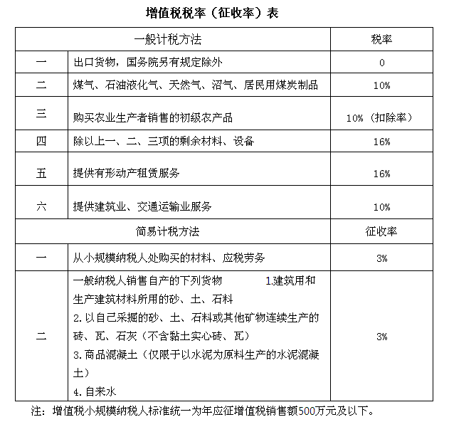 一、納稅人發(fā)生增值稅應(yīng)稅銷售行為或者進(jìn)口貨物,原適用17%和11%稅率的,稅率分別調(diào)整為16%、10%。